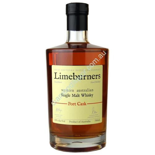 This whisky exhibits spice and fruit aromas when neat. With a splash of water it unleashes malted barley, port and vanilla aromas with hints of honey, raisins and caramel. Limeburners Port Cask whisky has intense, complex flavours. Full mouthfeel and sweet finish.