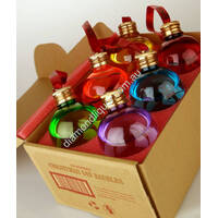 Each pack contains 6 different coloured  baubles, ready to hang on the tree